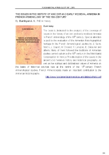 | Dumikyan A. V., The Issues in the History of ancient and early medieval Armenia In French Armenology of the 19th century | Dec 13, 2023 |