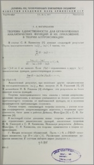 | Теоремы единственности для ограниченных аналитических функций и их приложение в теории аппроксимации | Oct 14, 2024 |