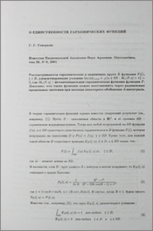On uniqueness of harmonic functions / G. G. Gevorkian.
