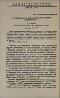 Էթիլբենզոլի օքսիդացման արգելակումը հիդրազիններով. I; The inhibition of ethylbenzenes. I