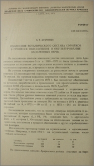 | Изменение ботанического состава сорняков в процессе обессоления и окультуривания засоленных почв | Oct 7, 2024 |
