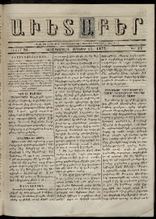 | Աւետաբեր, 1875, հատոր 30, թիւ 37 (Սեպտեմբեր 15) | Feb 24, 2023 |
