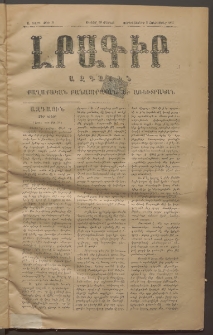 | ԼՐԱԳԻՐ ԱԶԳԱՅԻՆ, 1875, Ա տարի, Թիւ 31 (Չորեքշաբթի, 8 Հոկտեմբեր) | Feb 23, 2023 |