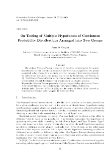 Նեյման-Պիրսոնի ստուգման օպտիմալ ընթացակարգը հետազոտվում է այն մոդելների համար, որոնք բնութագրվում են չորս անընդհատ հավանականային բաշխումներով, որոնք բաժանված են որպես վարկածներ դիտակվող երկու խմբի մեջ: Հարկ է նշել, որ երկու խմբի մեջ բաժանված երեք դիսկրետ հավանականային բաշխումների դեպքը հետազոտվել է Հարությունյանի և Եսայանի կողմից [1]: Նեյման-Պիրսոնի թեորեմը մեծ նշանակություն ունի, երբ խոսքը վերաբերում է այնպիսի խնդիրների լուծմանը, որոնք պահանջում են որոշումներ կայացնել կամ ավելի բարձր ճշգրտությամբ եզրակացություններ անել: