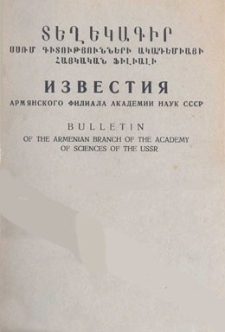Տեղեկագիր ՍՍՌՄ ԳԱ հայկական ֆիլիալի (Լրակազմեր) = Bulletin of the Armenian branch of the Academy of Sciences of the USSR