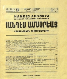 Հանդէս ամսօրեայ: Հայագիտական ուսումնաթերթ